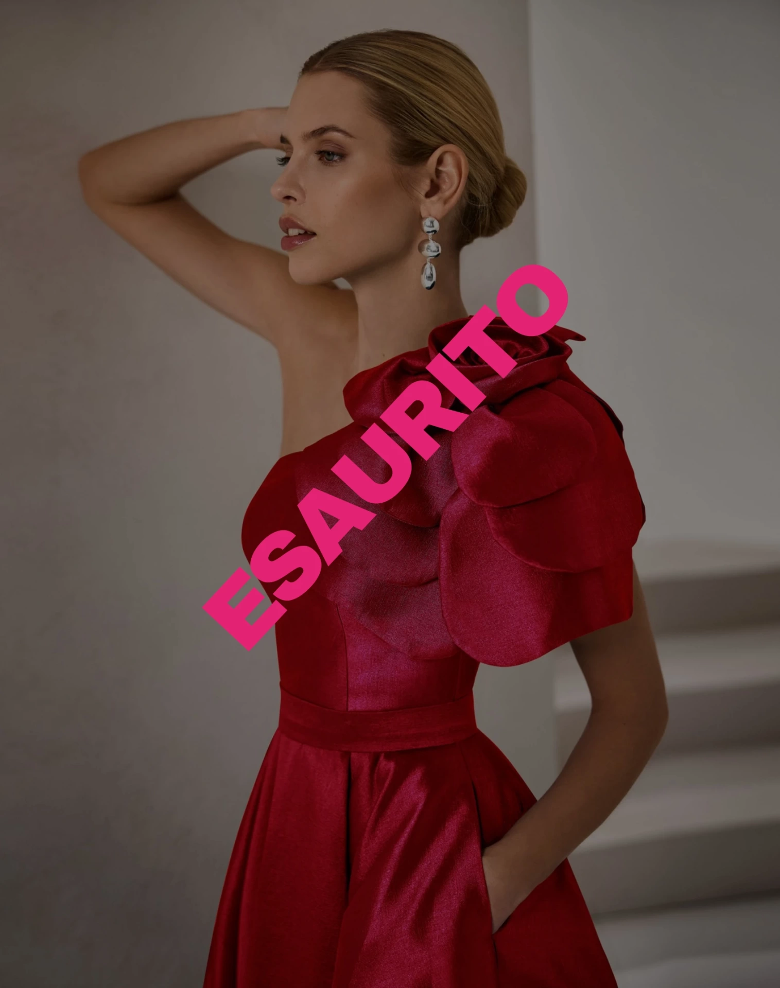 Un abito da cerimonia dal fascino iconico, caratterizzato da un’eleganza moderna e da dettagli couture.