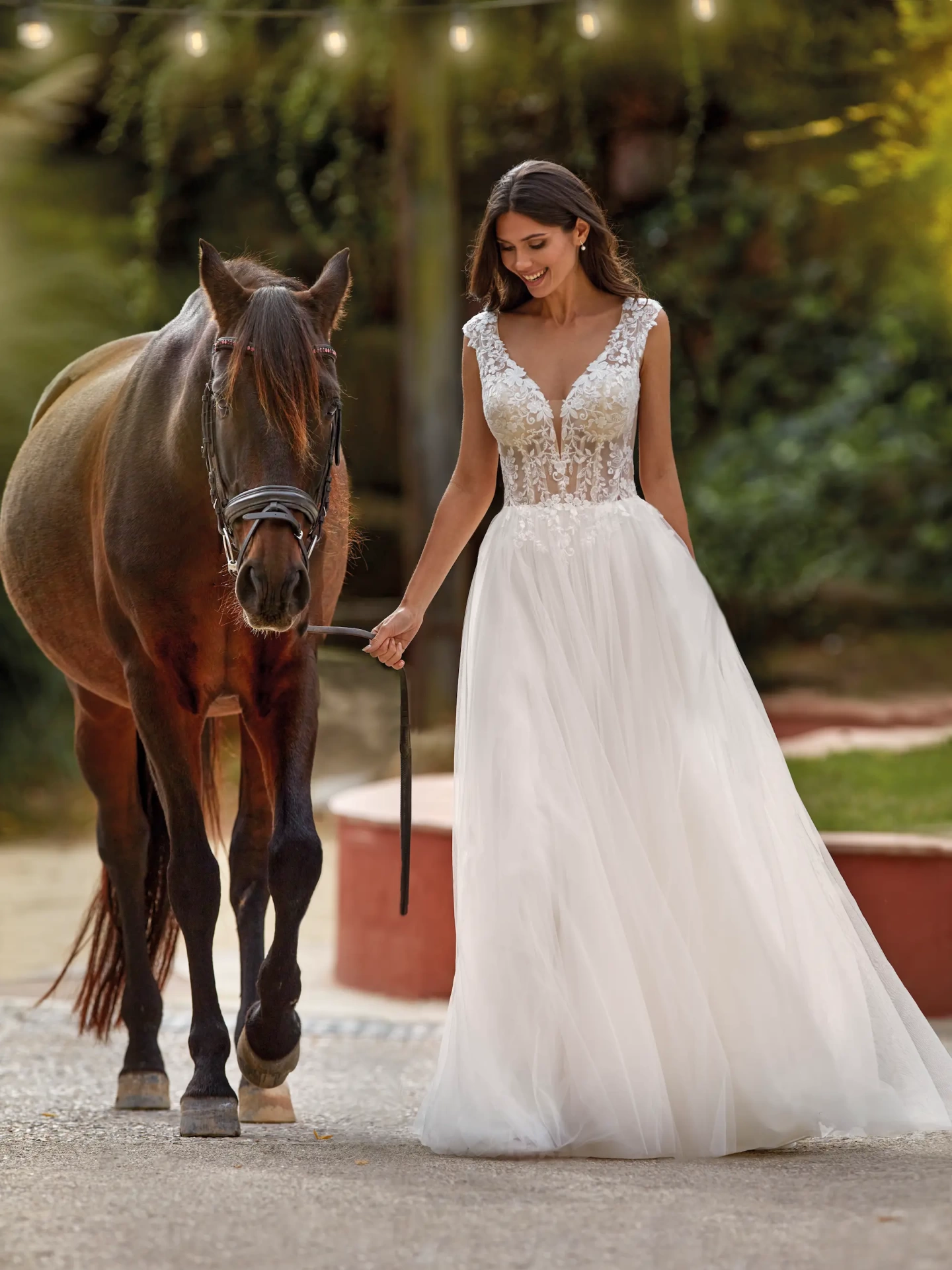 Il modello 25017 della Nuova Collezione Sposa firmata Amelie è un abito etereo che incanta con la sua delicatezza: il corpino a cuore con profonda scollatura frontale è impreziosito da un raffinato pizzo floreale ricamato su tulle illusion, che prosegue sulle spalline larghe donando struttura ed eleganza. La gonna in tulle morbido scivola con leggerezza e crea movimento ad ogni passo, mentre il profondo scollo sulla schiena regala un tocco di sensualità. Perfetto per la sposa che desidera sentirsi romantica e libera nel giorno del suo sì. Ideale per chi ama lo stile boho-chic ma non vuole rinunciare all'eleganza e alla raffinatezza. Un casale in campagna, una tenuta tra ulivie vigne, o una cerimonia all'aperto sotto le luci. Quest'abito si adatta perfettamente ad un matrimonio immerso nella natura, intimo e suggestivo.