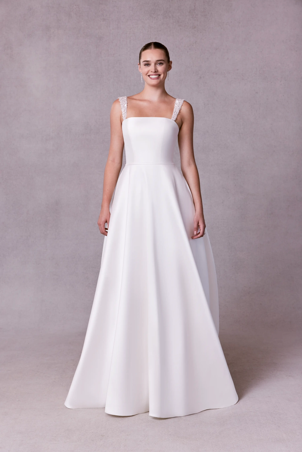 Il modello 2720 della Nuova Collezione Sposa firmata Morilee NewYork è l'essenza della raffinatezza. Un abito da sposa dal taglio pulito e scultoreo, con corpino strutturato e spalline gioiello staccabili che donano luce e femminilità! La gonna in mikado, ampia e fluida, scivola con naturalezza creando un effetto maestoso senza rinunciare alla comodità. Ideale per la sposa che cerca eleganza senza tempo, con un tocco di classe contemporanea!
