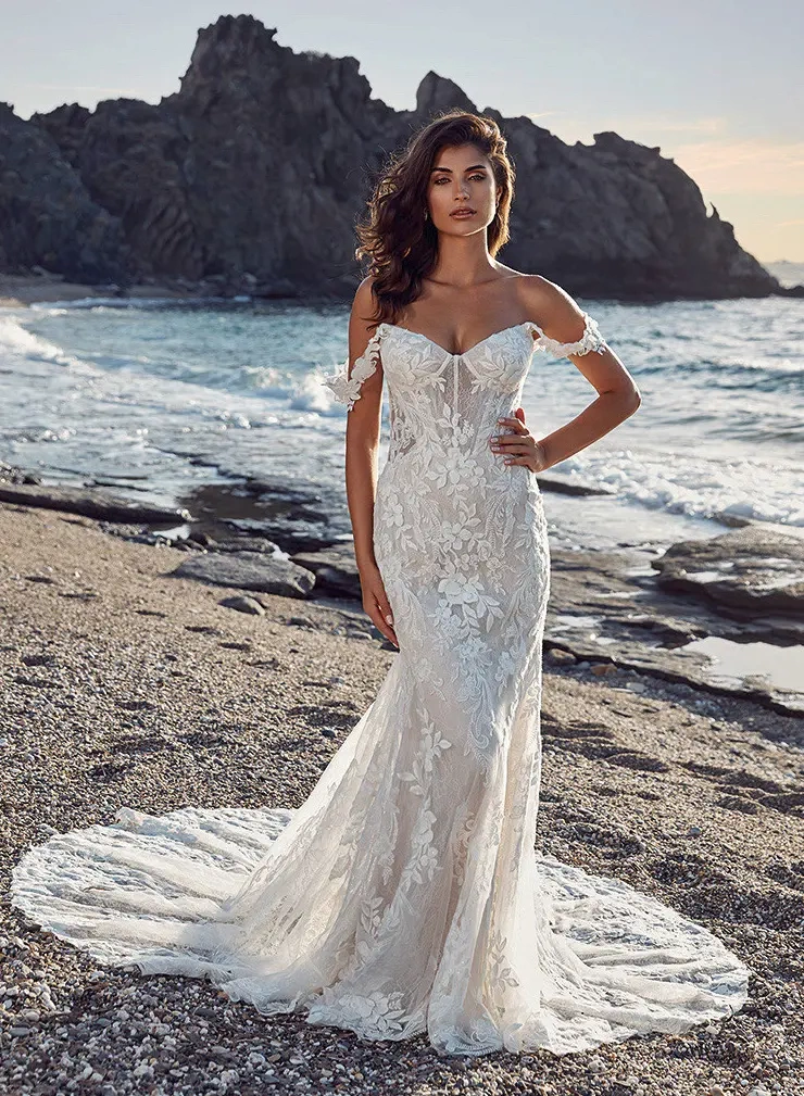 Il modello Amora della Nuova Collezione Sposa è una vera celebrazione della sensualità romantica. Questo abito da sposa in pizzo si distingue per i suoi raffinati dettagli floreali che danzano delicatamente su tutta la superficie, creando un effetto da sogno. Il corpetto a cuore, con spalline scivolate che abbracciano le braccia, dona un tocco di femminilità sofisticata. I ricami floreali sembrano sbocciare dolcemente sulla pelle, mentre il delicato gioco di trasparenze aggiunge una nota di seduzione. Il taglio a sirena valorizza la silhouette, seguendo dolcemente le curve della sposa fino a una coda leggera e romantica. Sul retro, l’abito continua a sorprendere con una scollatura profonda che lascia intravedere la schiena, incorniciata da ricami floreali che proseguono lungo la coda. La coda in pizzo ricamato scivola dolcemente, perfetta per una sposa che sogna un matrimonio in riva al mare, in un giardino fiorito o in una location romantica. E' pensato per una sposa che ama il fascino senza tempo del pizzo, ma desidera un look moderno e sensuale. Perfetto per chi vuole sentirsi avvolta dalla bellezza ad ogni passo.