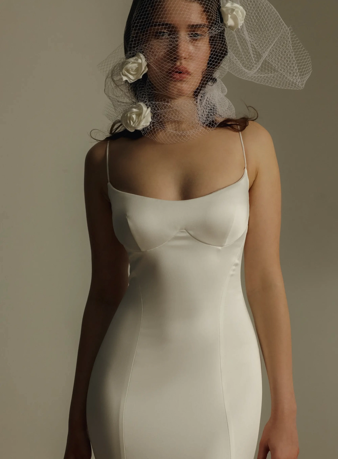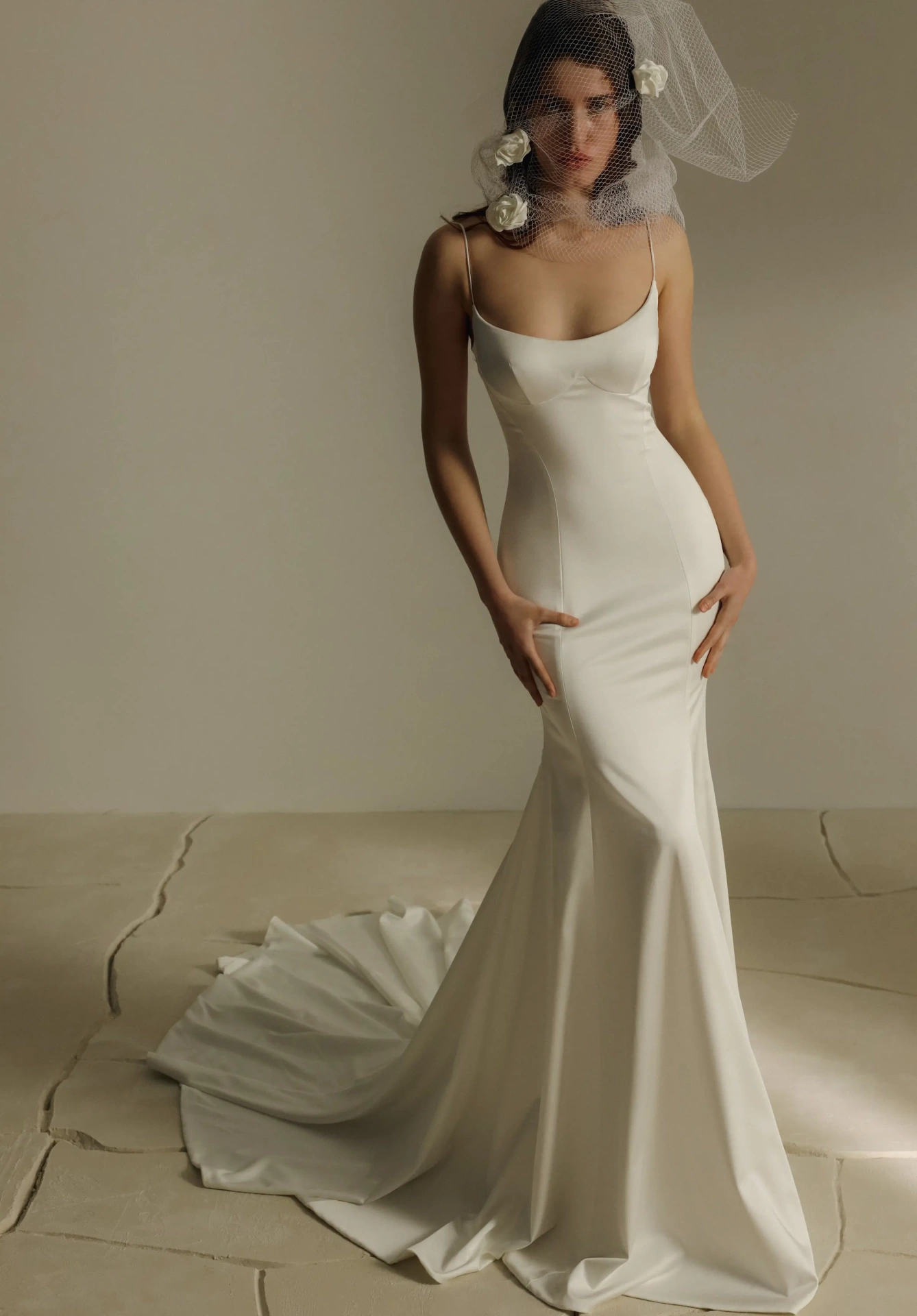 Il modello Ducray, della Nuova Collezione Sposa firmata Eva Lendel, sussurra eleganza e femminilità ad ogni passo. La sua linea a sirena accarezza le forme con grazia, mentre le sottili spalline e la scollatura morbida valorizzano la silhouette in modo discreto ma intenso. Realizzato in un tessuto fluido e luminoso, scivola con leggerezza sul corpo come una seconda pelle, per una bellezza senza tempo, mai urlata, ma profondamente sentita. La semplicità del design lascia spazio all’emozione: quella di sentirsi autentica, libera, bellissima. Un abito perfetto per la sposa che sogna uno stile raffinato, intimo, quasi cinematografico… dove ogni dettaglio racconta una storia fatta di eleganza e delicatezza.
