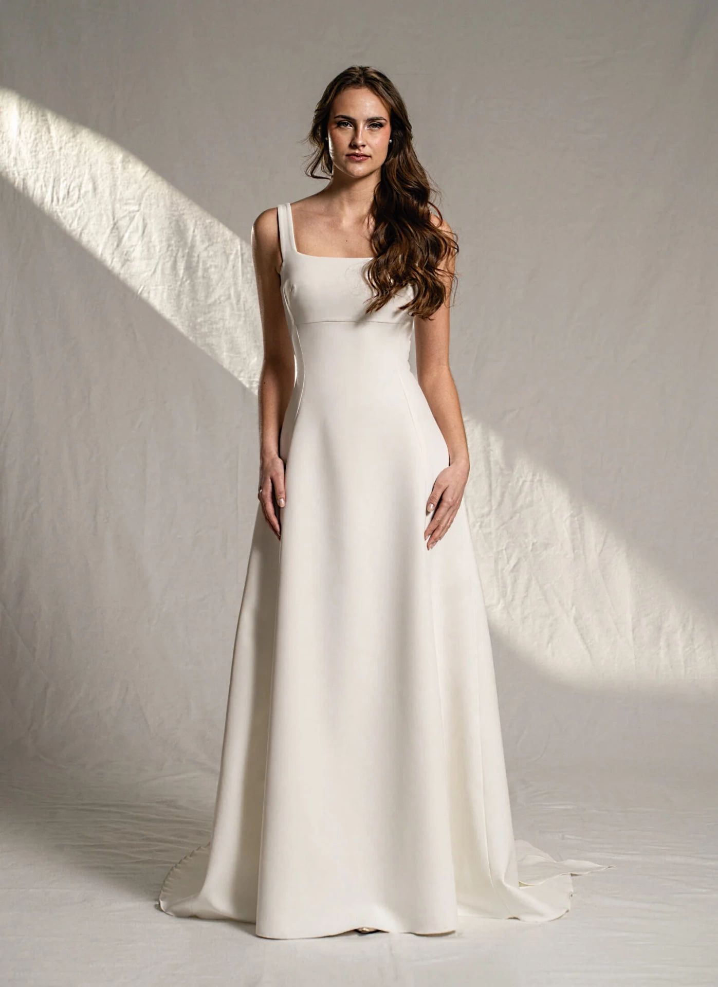 Sandra, della Nuova Collezione Sposa firmata Lili Pellegrino, è l’abito da sposa che unisce sobrietà e charme con una silhouette pulita ma raffinata. Il corpino con scollo squadrato e spalline larghe valorizza le spalle con delicatezza, mentre la schiena profonda a V regala un effetto sorpresa dall’eleganza discreta.